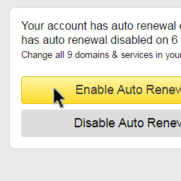 Check to see your payment information is correct and select Enable Auto-Renew on All Domains/Services.